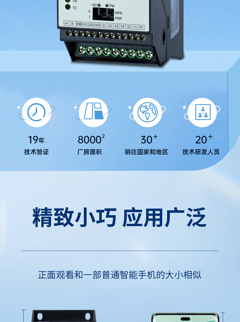 JL10變頻器新品上市,處處是升級,產品身材更小,正面觀看和一部普通智能手機的大小相似。產品雖小,功能齊全。多功能端子接口可聯(lián)機/可聯(lián)網(wǎng),產品外殼采用阻燃材料,耐高溫。