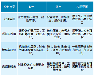 目前市場上使用的張力控制方案主要有四種(見表1)。