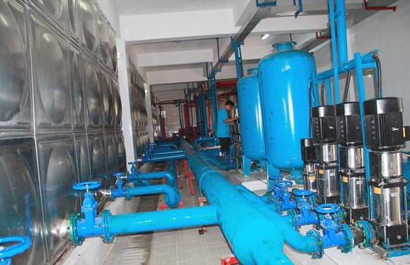 DCS集散系統(tǒng)+人機(jī)界面+三科SKI600系列產(chǎn)品+PID控制+壓力傳感器??赏ㄟ^現(xiàn)場和面板以及觸摸屏進(jìn)行設(shè)定操作啟、停、調(diào)整運(yùn)行頻率和監(jiān)控電機(jī)的電流、轉(zhuǎn)速、電壓、壓力、運(yùn)行時間和故障報警。通過壓力變送器將信號傳送給PID控制儀,根據(jù)設(shè)定值與反饋信號的差值進(jìn)行PID運(yùn)算后,給SKI600一個4~20mA的信號,從而保證了恒定的水壓輸出。